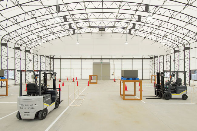 −− 全天候型フォークリト講習センターなので雨の日も安心! −−